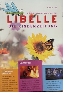 Die Kinder der 5g haben ihre eigene Zeitung geschrieben. Die Aprilausgabe der Kinderzeitung Libelle des Kreisjugendrings Roth wurde von der Klasse 5g selbst verfasst.  Auch das Design durften die Kinder selbst bestimmt.