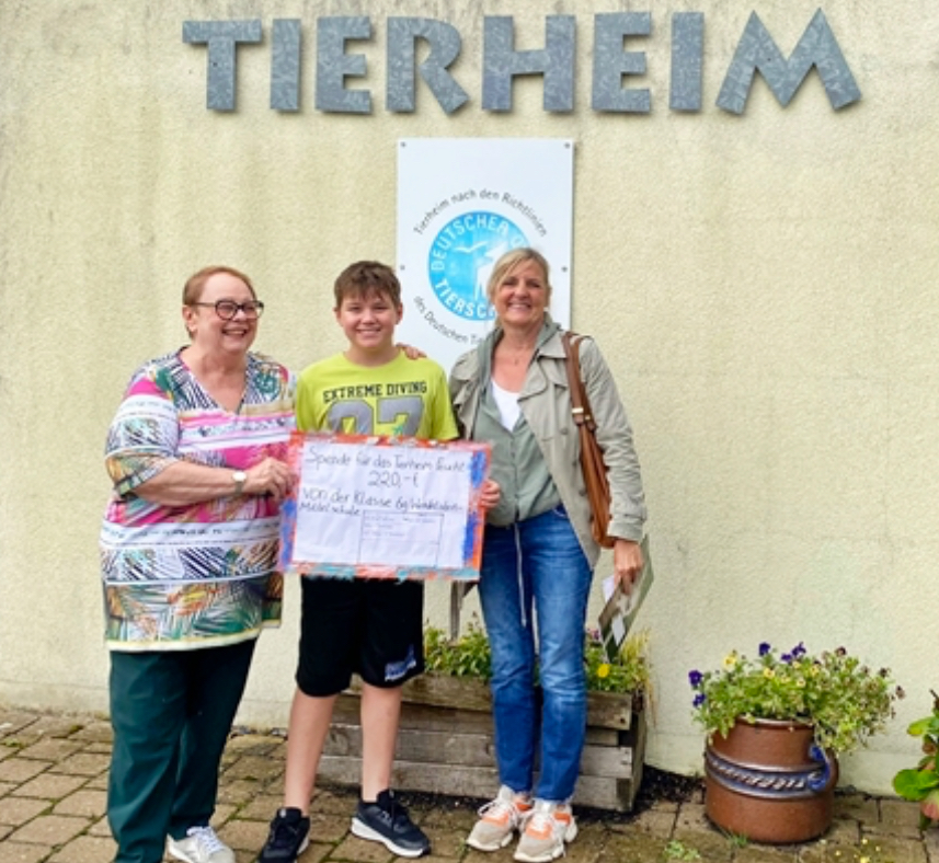 Vor einigen Tagen durfte das Tierheim Feucht einen besonderen Besuch empfangen: Die Schüler der Klasse 6g kamen zu Besuch, begleitet von ihrer Lehrerin Frau Roedel, um persönlich ihre Spende abzugeben. Mit großer Freude über brachten Sie eine großzügige Spende in Höhe von 220 Euro.